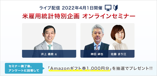 【外為どっとコム】『LIVE配信 オンラインセミナー 米雇用統計』市場への影響を識者が予想 〜4/1(金)21:00より開催〜
