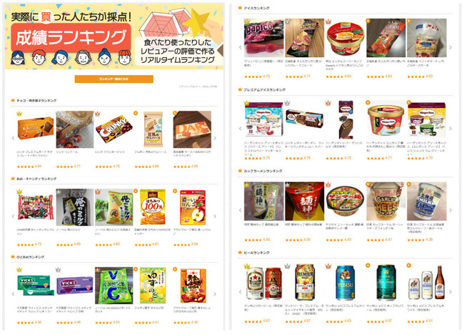 実際に食べた・使った人が採点した評価を「成績ランキング」に反映