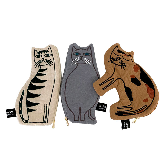 バッグとおそろいで使えるこちらはねこの形にダイカットされたポーチ。クッションと同じくねこは刺繍で表現しています。鍵やリップなどのコスメ、バッグに忍ばせておきたいお菓子など小さなものの収納にぴったりのサイズ感。ねこ好きさんへのプチギフトとしてもおすすめです。