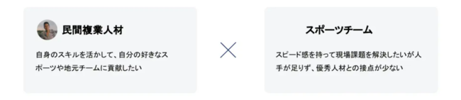 スポーツチームが複業人材登用により経営強化が可能になるサービスです。スポーツ業界の慢性的な人材不足による課題も解決します。
