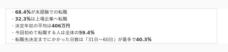 本調査では、「決定した職種」「転職先の業界」「転職先のリモートワーク率」など、計8項目を紹介しています。