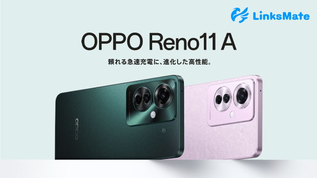 「OPPO Reno11 A」をMVNOサービス「LinksMate(リンクスメイト)」にて、2024年6月27日(木)より販売開始