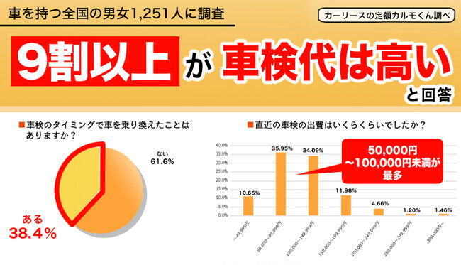 そこで、定額カルモくんでは、車を持つ全国の男女1,251人に、車検費用を高いと感じるか、実際の車検費用はいくらくらいなのかなどについて調査を行いましたので、2021年の調査結果も踏まえてご紹介します。