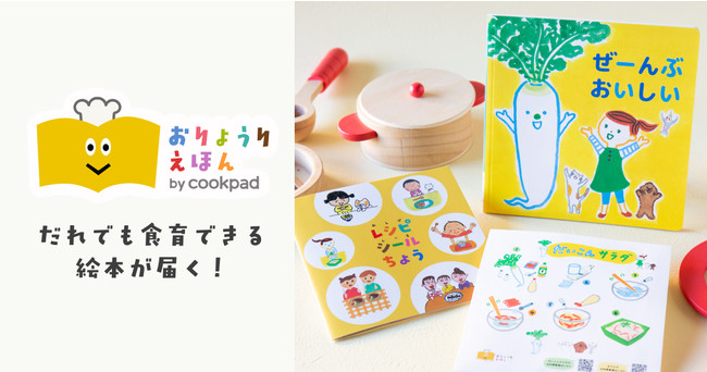 「おりょうりえほん」は、子どもの食に関する興味喚起と理解促進を目的とした、クックパッド監修のオリジナル食育絵本サブスクリプションサービスです。2019年のサービス開始以降、2〜6歳の子どものいる家庭に支持され、2022年8月時点で累計43,000冊以上を発行しています。