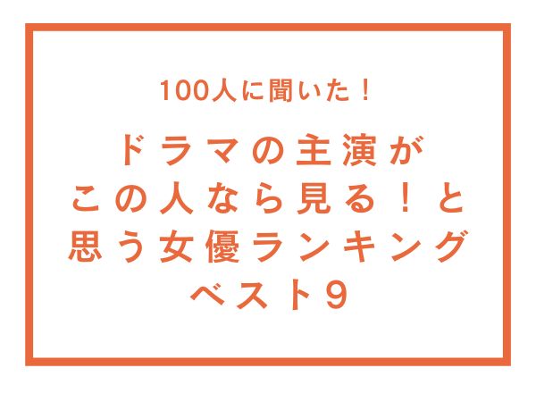 ドラマの主演がこの人なら見る!と思う女優ランキングベスト9【100人へのアンケート調査】