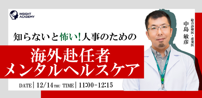 グローバル人材育成・研修業を手掛けるインサイトアカデミー株式会社(東京都港区、代表取締役:北村嘉章)は、無料webセミナー「【知らないと怖い!人事のための】海外赴任者メンタルヘルスケア」を開催します。