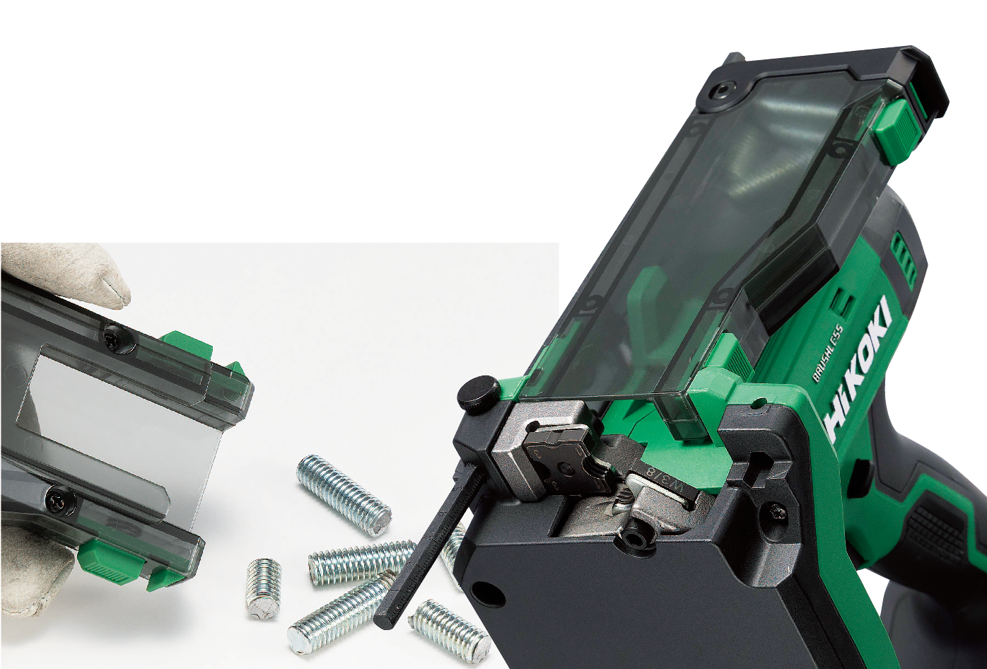2.コレクトボックスで切くずを回収切断後の全ねじが落下しない着脱式コレクトボックスを標準付属。高所や室内作業での安全性を高め、清掃や後処理の手間を軽減します。落下物による事故リスクを抑えながら、作業の流れを止めず効率よく進められます。