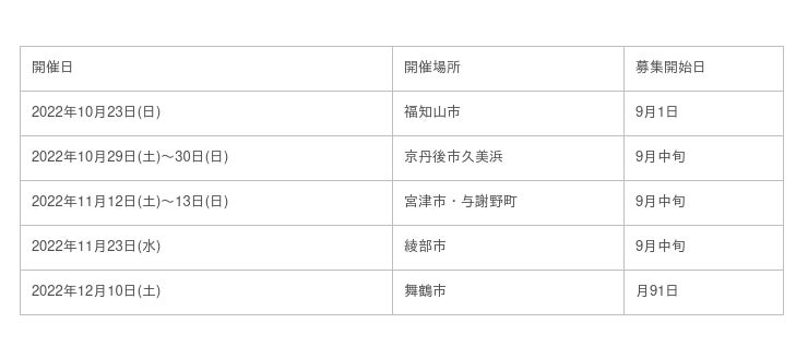 福知山市、舞鶴市、綾部市、宮津市、京丹後市、伊根町、与謝野町