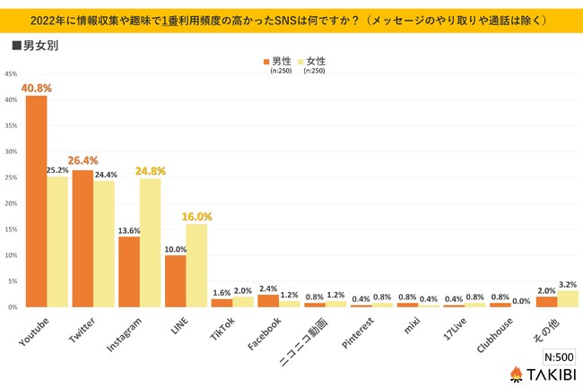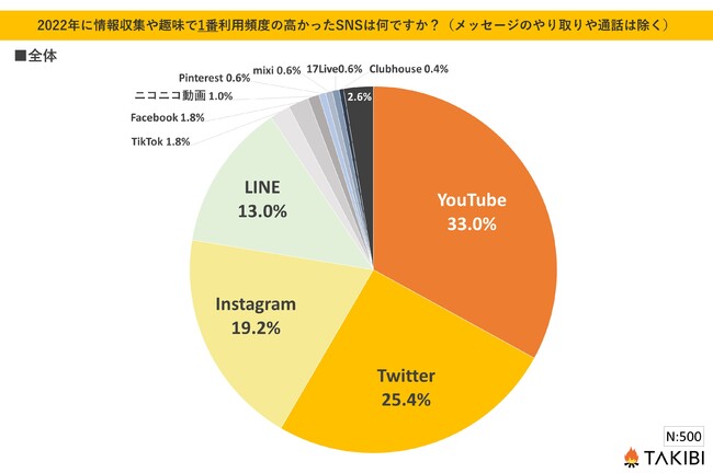 【質問:2022年に情報収集や趣味で1番利用頻度の高かったSNSは何ですか?(メッセージのやり取りや通話は除く)】