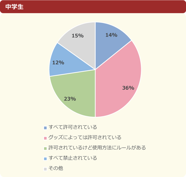 その他には「先生に報告すればOK」「匂いがしないもの」という回答がありました。一方で「わからない」「知らない」と答えた人が多く、ルールがしっかりと決まっていない学校もあるのかもしれません。