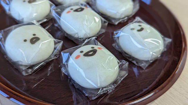 お文具さんが施されたこしあんのお饅頭が初登場。いろいろな表情のお文具さんが心を掴み、食べるのがもったいないくらいのかわいさです。