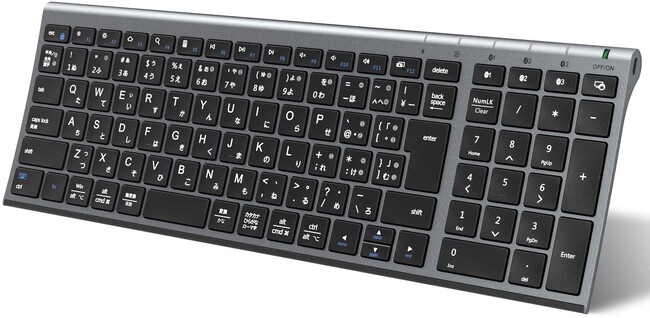 最大3台までのデバイスとマルチペアリングが可能なBluetoothキーボードです。指定のキーをワンタッチで接続先デバイスを瞬時に切り替えることができます。最薄部3mmとスタイリッシュな超薄型キーボードは、デスクをおしゃれな空間に仕上げます。また便利なType-C充電式を採用し、2時間のフル充電で約90時間の連続使用ができます。