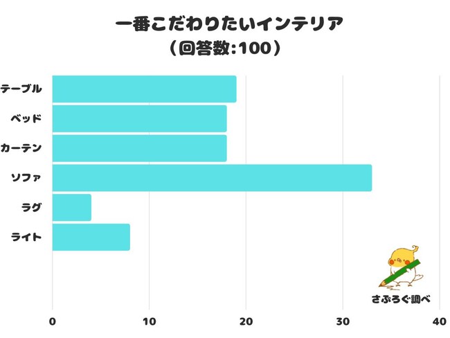 一番こだわりたいインテリアをアンケートにて調査したところ、1位は「ソファ」でした。