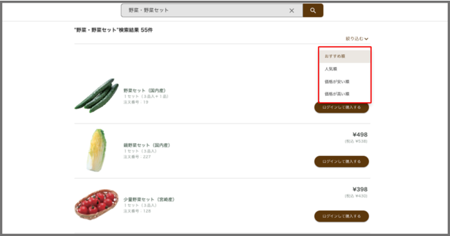 おすすめ順や宅配システムならではの絞り込み機能の実装で利便性が向上いたしました