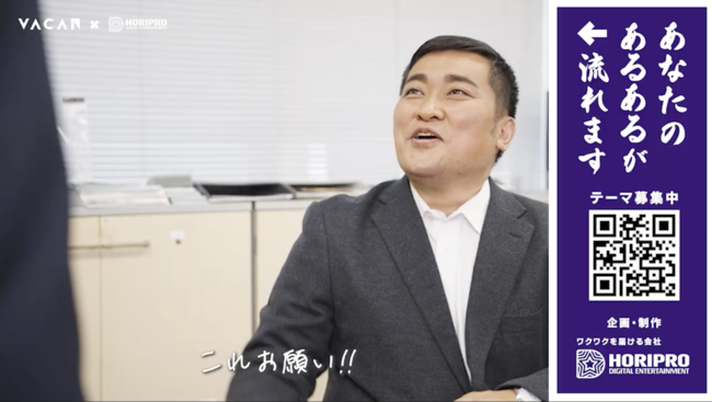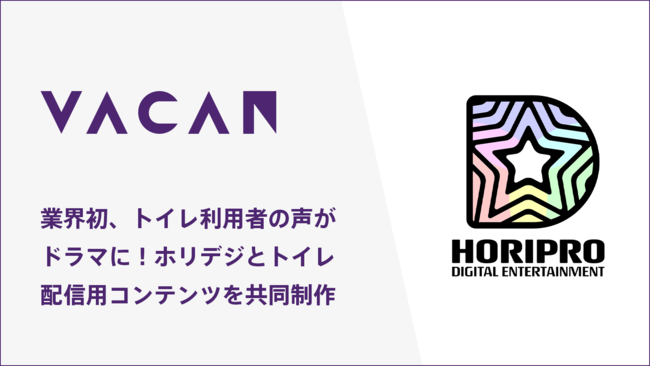 AIとIoTを活用して「待ち」をなくすサービスを提供するスタートアップ、株式会社バカン(本社:東京都千代田区、代表取締役:河野剛進、以下「バカン」)は、この度株式会社ホリプロデジタルエンターテインメント(本社:東京都目黒区、代表取締役社長:鈴木秀、以下「ホリデジ」)と協業し、トイレ利用者に向けた動画コンテンツを共同制作しました。コンテンツの内容はトイレ体験の向上を目的とした内容となっており、トイレの混雑抑止メディアサービス「VACAN AirKnock Ads」(エアーノック アッズ、以下 AirKnock Ads)」を通してトイレ個室内で10/31(月)より全国で配信されます。