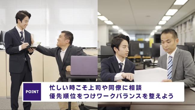 「こんな部下・上司、”あるある”だよね」、そんな普段から社会人が感じているモヤモヤを、解決に向けたワンポイントアドバイスと共に笑いを交えて伝える動画となっています。また今後、コンテンツの内容は動画内に設置されたQRを読み込むことで回答できるアンケートを通して、トイレ利用者から集められた声を参考に制作していく予定です。今回のトイレ利用者の声を元にドラマをつくり、トイレで放映する取り組みは映像制作業界初(※)となります。