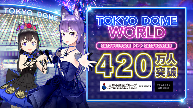 REALITY XR cloud株式会社(本社:東京都港区、代表取締役社長:春山一也 グリー株式会社100%子会社 以下「REALITY XR cloud」)が三井不動産株式会社(本社:東京都中央区、代表取締役社長:菰田正信)と株式会社東京ドーム(本社:東京都文京区、代表取締役社長 CEO:長岡勤)の2社(以下「三井不動産グループ」)と2022年11月30日(水)から2023年2月28日(火)までコラボした「東京ドームワールド」の来場者数が420万人※を突破しました。