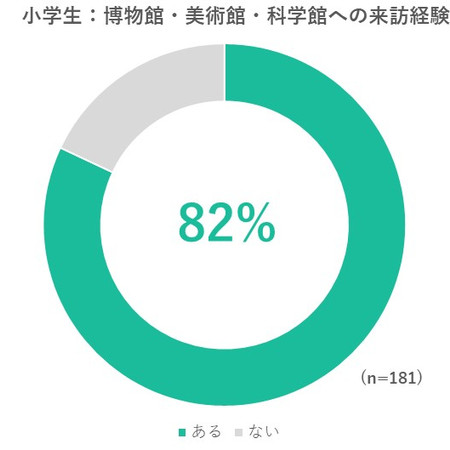 82%が「来訪経験あり」と回答。やはり未就学児と比べると来訪経験がかなり増える結果となりました。小学校にあがると、好奇心も増えて学習意欲が上がったり、夏休みの自由研究などもあるので、必然的に博物館や美術館、科学館といったミュージアム施設に行く機会も増えるのでしょう。