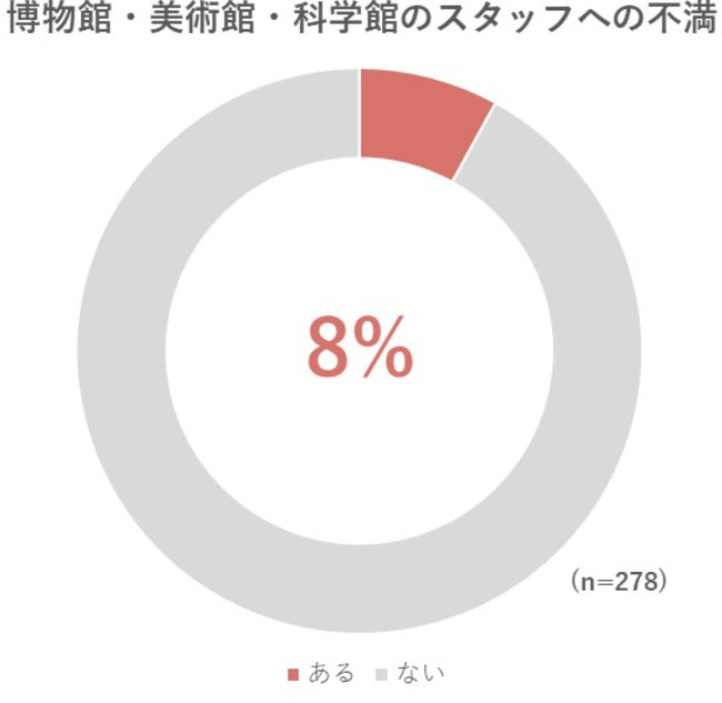 博物館・美術館・科学館のスタッフに対して不満をもったことがある親はわずか8%。不満の内容は「子供に対して冷たい、無愛想」