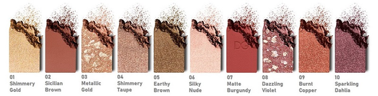五感が喜ぶ、ベルベットのように滑らかなウルトラリッチなパウダーシャドウが10色。どのシェードも色やテクスチャーを駆使した、虹色に輝くゴールド系の完璧なラインナップです。鮮やかな発色が長時間続き、目もとに魅惑的な新しいアクセントを与え、目もとを彩ります。軽いタッチからラインまで幅広く演出でき、コシと柔らかさのバランスが抜群のダブルエンドブラシも内蔵。単色でも、グラデーションで重ねても、プレイフルにアイメイクを楽しめます。よりまぶたにシャドウをフィットさせ、発色や色持ちを良くする水使用もおすすめです。