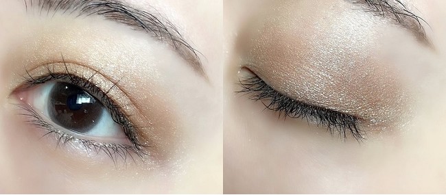 色味は殆ど無く、ハイライトのような艶感、ヌーディーさがあるカラー。パールがとても際立つので艶めきを足したい時に重ね使いに使用するのもオススメ。