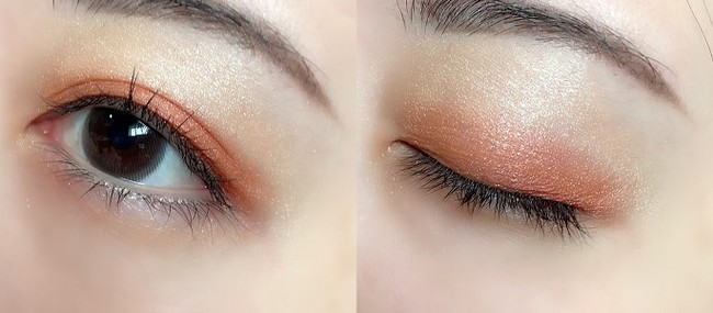 高発色でメタリックなオレンジは、アイラインやポイント使いで印象的に。
