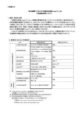 • ≪別紙3≫“防災週間”における「災害用伝言板(web171)」のご利用条件等について