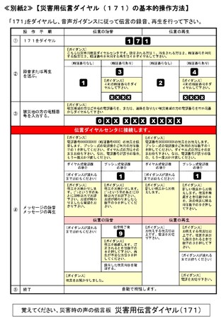 • ≪別紙2≫「災害用伝言ダイヤル(171)」の基本的操作方法