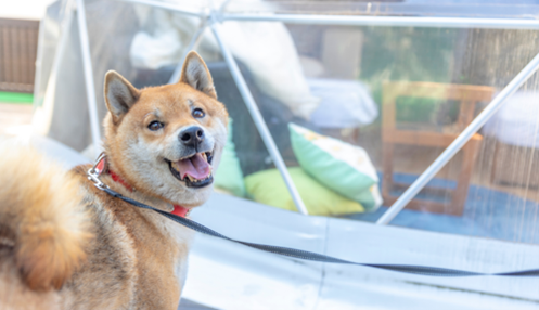 プライベート性を重視した独立型のドーム型テントとハウスの組み合わせで一つの全天候型プライベート空間を実現。