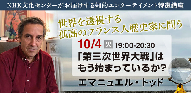 【NHKカルチャー】開催迫る!【10/4(火)】現代最高の知性 エマニュエル・トッド氏のオンラインセミナー開催!