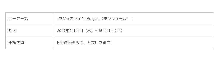 あの“ポンタカフェ”「Ponjour(ポンジュール)」がKidsBeeららぽーと立川立飛店に登場!