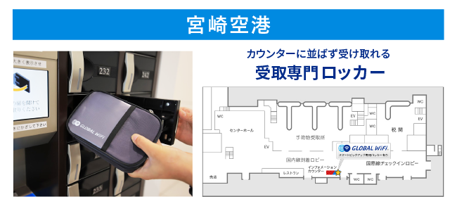 海外用 Wi-Fi ルーターレンタルサービス「 グローバル WiFi(R) 」( https://townwifi.com/ )を提供する株式会社ビジョン(本社:東京都新宿区 代表取締役社長:佐野健一 以下ビジョン)は、宮崎空港において、カウンターに並ばずに「 グローバル WiFi(R) 」を受け取れるロッカー「スマートピックアップ」の運用を、8月30日(火)より開始いたしました。