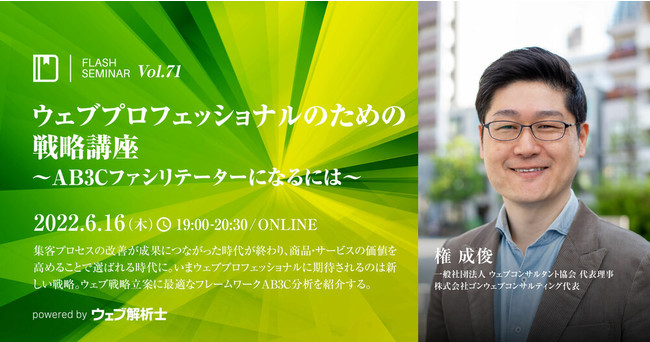 2022/6/16(木)19:00-20:30 FlashセミナーVol.71【無料】ウェブプロフェッショナルのための戦略講座 〜 AB3Cファシリテーターになるには 〜