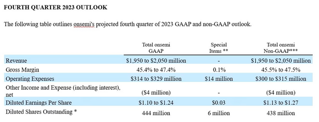 以下の表は、オンセミの2023年第4四半期のGAAPおよび非GAAPベースの見通し概要です。