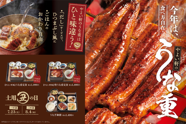 株式会社プレナスは、定食レストラン「やよい軒」を、2022年5月末現在366店舗展開しております。このたび「やよい軒」は、夏の風物詩であるうなぎを様々なスタイルでお楽しみいただく『うな重定食』1,090円とうなぎが2倍の『特うな重定食』1,890円、うなぎをはじめ、4種の和惣菜を少しずつ味わえる『うなぎ御膳』1,490円を発売いたします。また、「やよい軒」公式アプリ限定で、7月22 日(金)より7 月24 日(日)までの3日間、このたび発売するうなぎの定食3商品を通常価格より100 円引きで何度でもお召し上がりいただける『なんどもパス』を配信いたします。