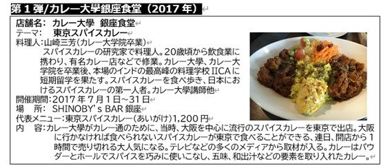カレー大學でカレー通を対象に一流料理人を起用し期間限定で出店するコンセプトカレーショップ。事業は2017年から始動し、これまで2店舗出店。いずれもメディアで話題となり、行列が途切れない店舗として大成功している。