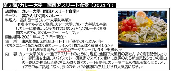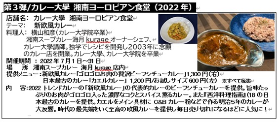 内 容:1)2022トレンドカレーの「新欧風カレー」の代表的カレーである高級牛のビーフカレーを提供。
