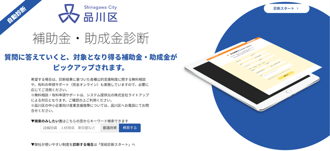 【都内5区目】ライトアップ、品川区へ「Jシステム(補助金・助成金自動診断システム)」を提供開始。区内事業者に向けた支援体制の強化を共同実施