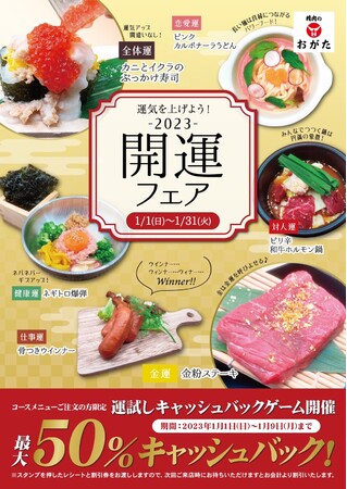 精肉のおがた(木の葉モール橋本店・宗像店) 2023年元旦より【開運フェア】開始! さらに期間限定で最大50%キャッシュバックキャンペーンも!!
