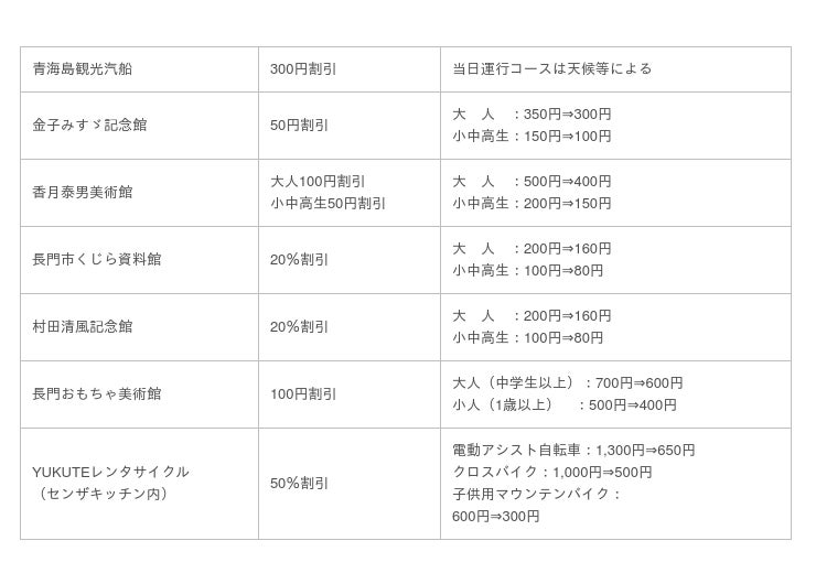 ご乗車いただいたすべてのお客さまに長門市内で使える割引クーポンをお配りいたします。