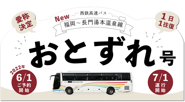 西日本鉄道株式会社(本社:福岡市博多区、代表取締役社長執行役員:林田浩一、以下、「西鉄」)が、2022年7月1日(金)から運行を開始する「福岡〜長門湯本温泉線」の愛称が「おとずれ号」に決定いたしました。