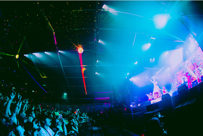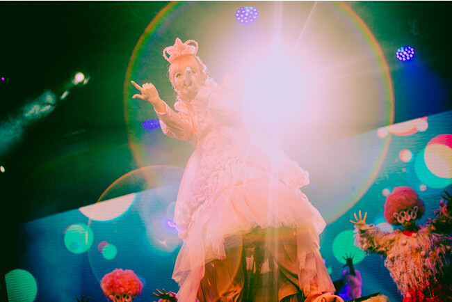 うさぎのお面を被ったDJが登場し「DE.BA.YA.SHI.2021」をかけると、楽曲に合わせて再び「きゃりー!きゃりー!」と会場内に大きなコールが起こり、今年開催したワールドツアーで披露していた、ピンクの衣装を身にまとったきゃりーが登場。