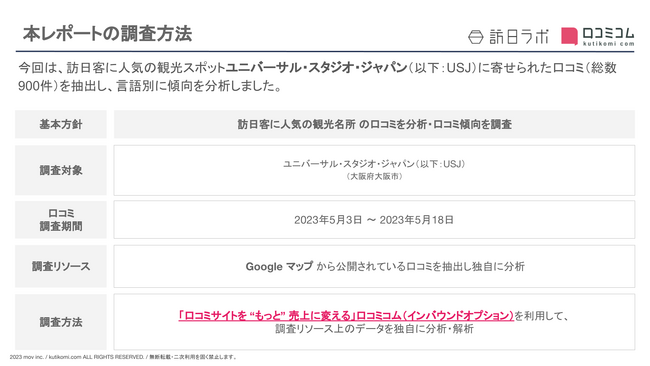 口コミサイトを”もっと”売上に変える店舗支援SaaS「口コミコム」及び国内最大級メディア『訪日ラボ』を運営する株式会社mov(代表取締役:渡邊 誠、本社:東京都渋谷区、以下mov)では、『口コミコム』の分析機能を用いてレポートを作成しています。