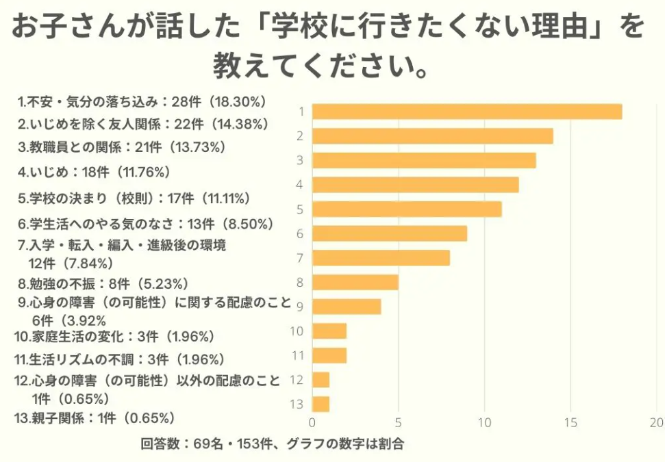 [画像3: https://prcdn.freetls.fastly.net/release_image/41906/287/41906-287-9d0f5a3fe9f8b5ce916da1345e195d75-972x719.png?width=536&quality=85%2C75&format=jpeg&auto=webp&fit=bounds&bg-color=fff ]学校に行きたくない理由〜「不安・気分の落ち込み」が一番多い〜