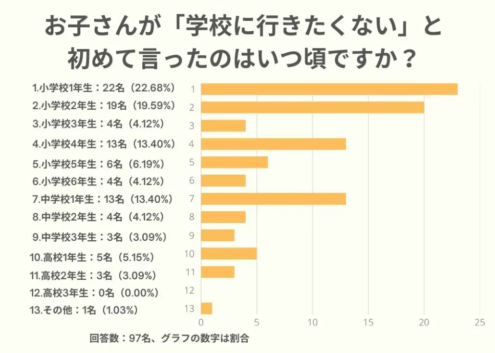 [画像4: https://prcdn.freetls.fastly.net/release_image/41906/287/41906-287-277a936e8e839bfeb367395aee9effa3-974x675.png?width=536&quality=85%2C75&format=jpeg&auto=webp&fit=bounds&bg-color=fff ]「行きたくない」と言い出すのは低学年が最多