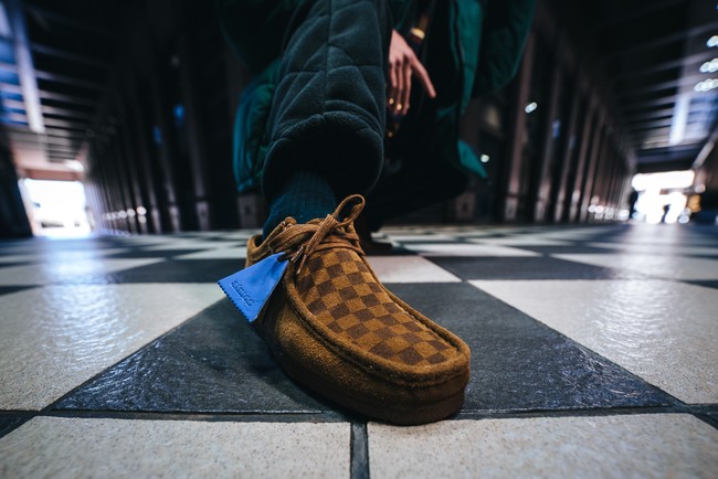 “F-LAGSTUF-F”がカスタムを施したatmos × F-LAGSTUF-F × Clarks Originals “WALLABEE” Checkered Flagが登場。