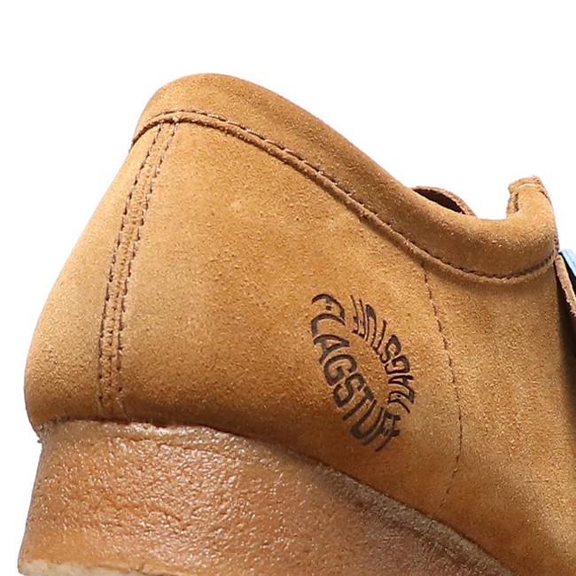 F-LAGSTUF-Fとの初のコラボレーションアイテムのベースとして採用したモデルは、Clarks Originalsのアイコンモデルとして、長きに渡って世界中で支持続けている「WALLABEE」。シンプルでクリーンな印象を持つ「WALLABEE」をベースに、F-LAGSTUF-Fがデザインを上乗せし、カスタムを施したリミテッドモデルです。