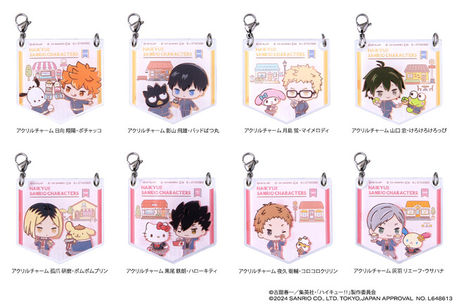 株式会社バンダイ ベンダー事業部(本社:東京都台東区)は、アニメ『ハイキュー!!』とサンリオキャラクターズのスペシャルコラボイラストを使用したガシャポン(R)「ハイキュー!!×サンリオキャラクターズ アクリルあそーと」(1回400円・税10%込、全16種)を2024年7月第2週から順次、全国のガシャポンバンダイオフィシャルショップ、玩具売り場・量販店・家電店などに設置されたガシャポン自販機シリーズにて発売いたします。