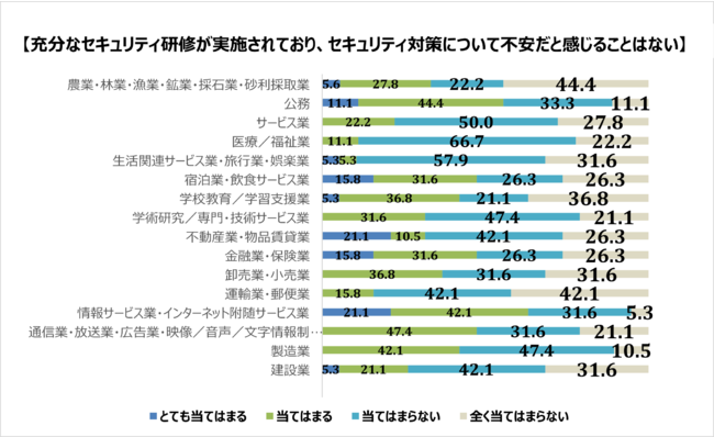 サイバー防御力が低い業種では、従業員の2人に1人が勤務先のセキュリティ意識に
