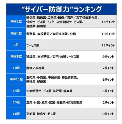 〜“サイバー防御力”が最も高い業種は通信業・放送業、情報サービス業、金融業・保険業と判明!〜